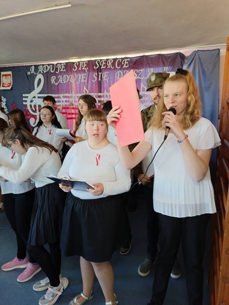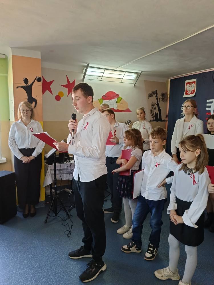 Uczniowie wraz z nauczycielami przygotowali piękne pieśni patriotyczne, które zabrzmiały w naszej szkole, przypominając nam, jak ważna jest wolność