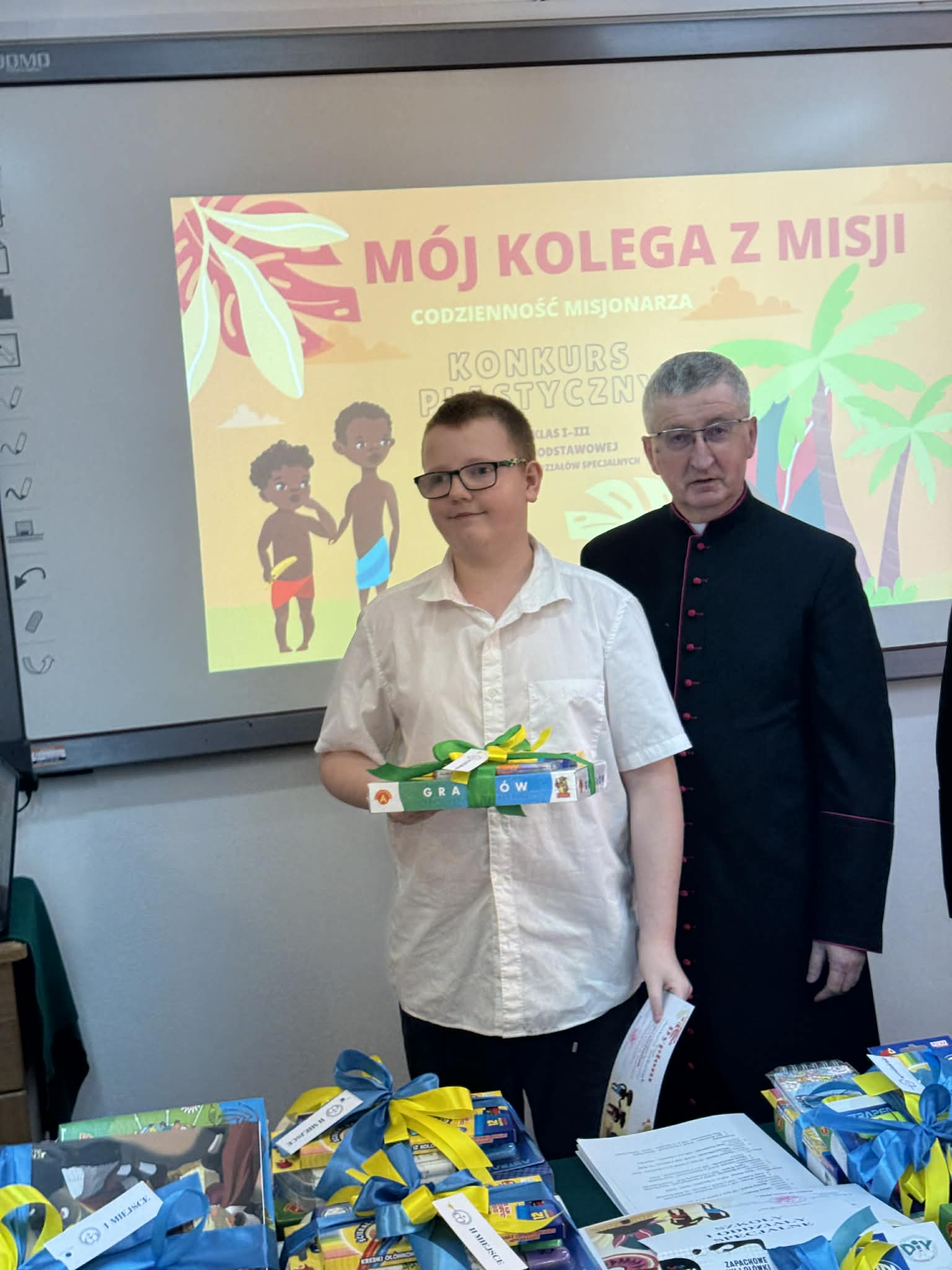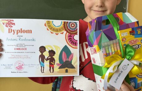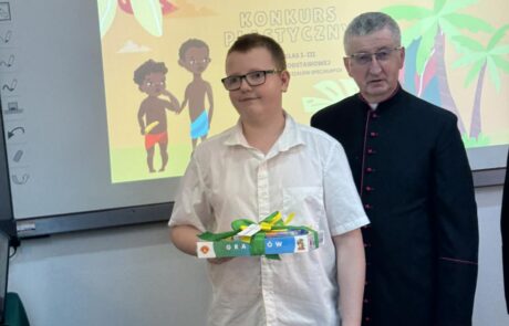 Ponad 800 uczniów z 51 szkół podstawowych z terenu diecezji radomskiej uczestniczyło w konkursie: Mój kolega z Misji – codzienność misjonarza. Zadaniem uczniów było przedstawienie jednego dnia z życia misjonarza w dowolnym miejscu na świecie. 12 marca 2026 r odbyła się uroczystość wręczenia nagród i wyróżnień. Wśród nagrodzonych i wyróżnionych znaleźli się przedstawiciele naszej placówki: Oliwia Karpińska ( II miejsce w kategorii klas III), Antoni Rosłowski ( II miejsce w kategorii klas IV) oraz Antoni Sobczyk – wyróżnienie.