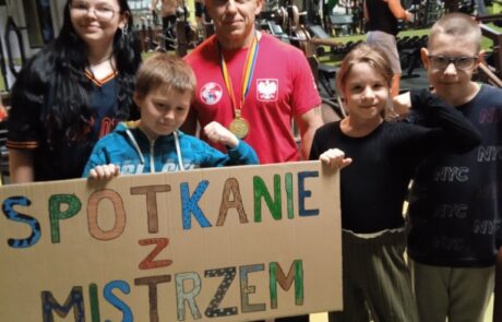 Klubu Sportowego VIKING w Starachowicach, uczestniczyli w spotkaniu z 20 – krotnym mistrzem świata w trójboju siłowym p. Jarosławem Olechem, który z wielką chęcią udzielił wywiadu na zadane pytania. Opowiedział wychowankom o przebiegu swojej niełatwej kariery sportowej oraz o licznych osiągnięciach w podnoszeniu ciężarów. Zdradził, że nie była to łatwa droga. Ale dzięki silnej woli i determinacji w dążeniu do celu, można go osiągnąć. Pan Jarosław zachęcał młodych ludzi do podejmowania systematycznej i wytrwałej aktywności fizycznej. Na koniec spotkania wychowankowie wraz z wychowawcą uczestniczyli z mistrzem we wspólnej sesji zdjęciowej.