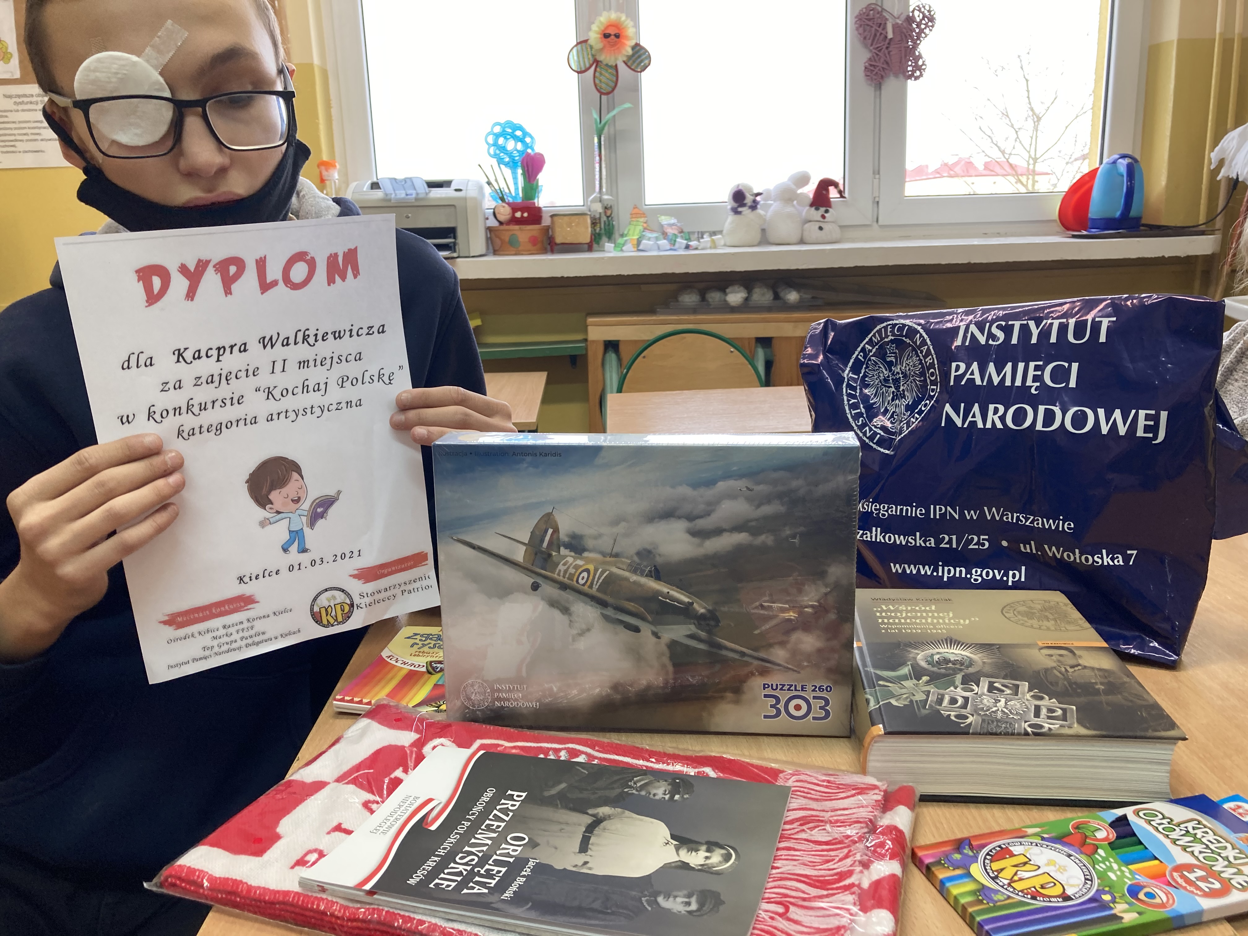 Z wielką przyjemnością informujemy, że laureatami wojewódzkiego konkursu zorganizowanego przez Stowarzyszenie Kieleccy Patrioci zatytułowanego Kochaj Polskę zostali uczniowie naszego Ośrodka: Kacper Walkiewicz (II miejsce w kategorii literackiej), Diana Kaczor, Ola Rękawik, Agata Grzmiel, Paulina Mikos, Julia Jasionka i Mikołaj Sikora (III miejsca w kategorii plastycznej). Celem konkursu było propagowanie postaw patriotycznych wśród dzieci i młodzieży, kształtowanie pozytywnego wizerunku rodziny, Ojczyzny, tworzenie osobistego, estetycznego sposobu wypowiedzi oraz kształtowanie wrażliwości twórczej i plastycznej ekspresji. Uczniowie systematycznie rozwijają swoje pasje i zainteresowania dzięki czemu osiągają sukcesy zgodnie z osobistymi uzdolnieniami i potrzebami. Godnie reprezentują naszą placówkę w środowisku nie tylko lokalnym. Docenienie tak dużej grupy naszych uczniów cieszy całą naszą społeczność.