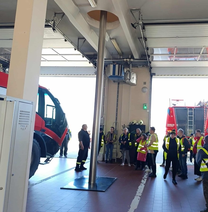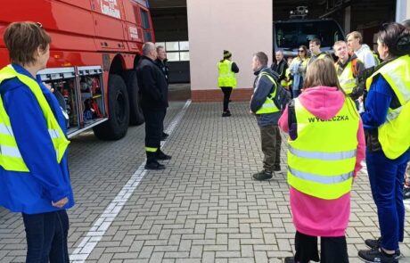 – spotkanie ze strażakami, prezentacja sprzętu i wozu bojowego, przymierzanie hełmu strażackiego oraz zjazd po ześlizgu,
