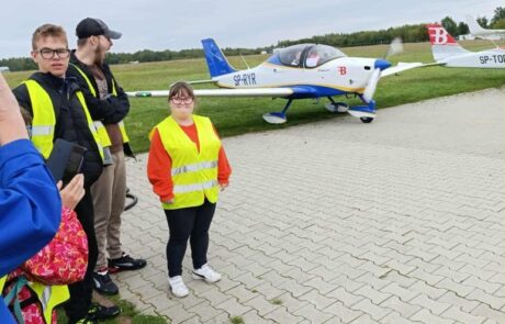 – oglądanie z bliska szkoleniowego samolotu od środka,